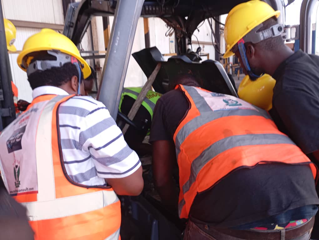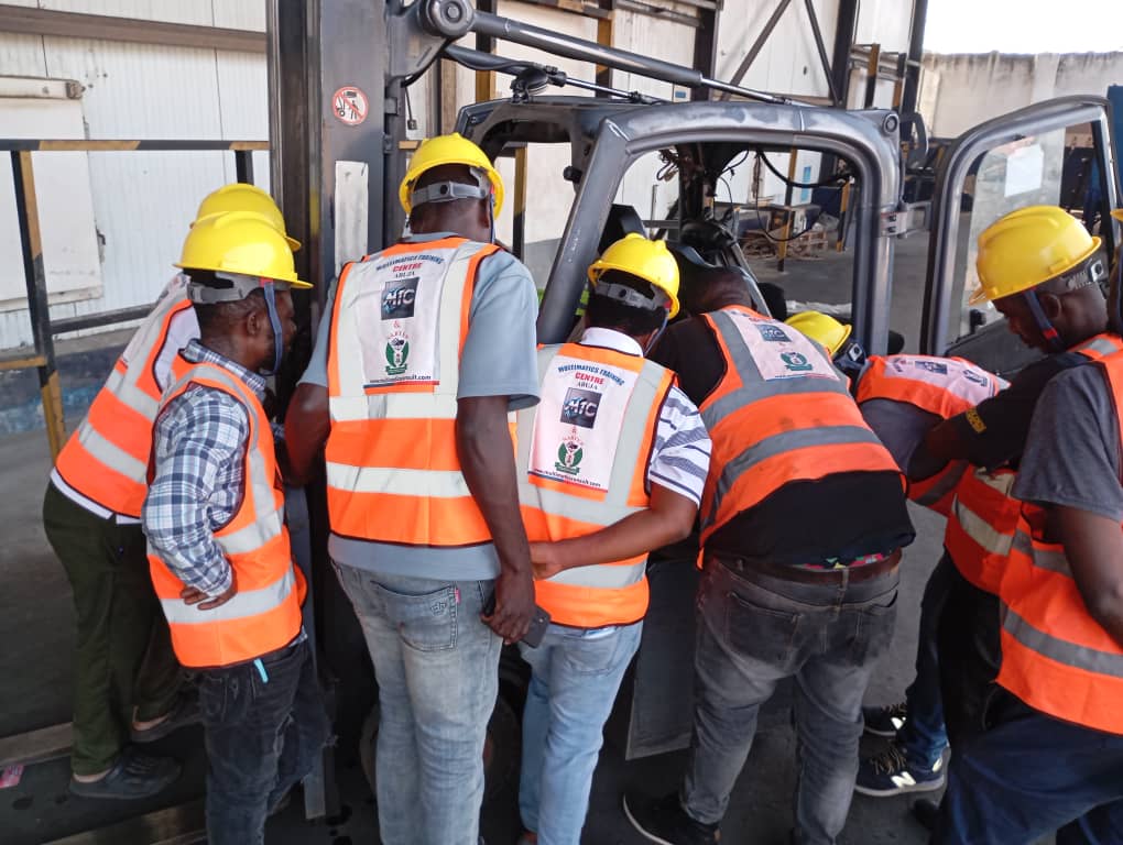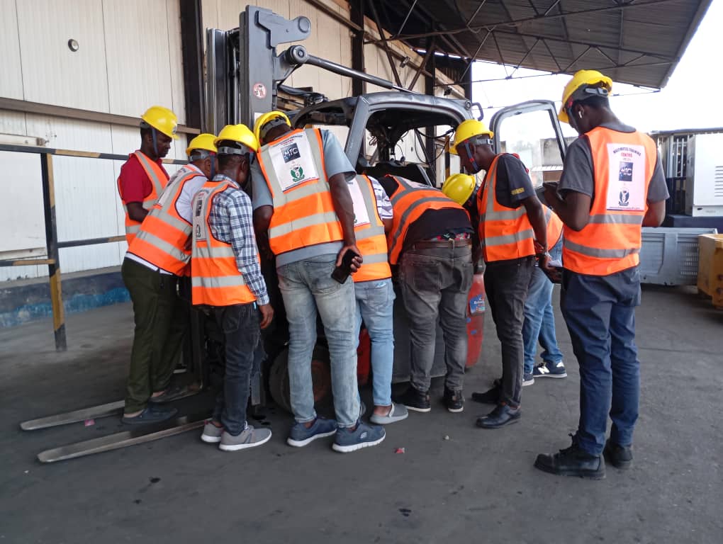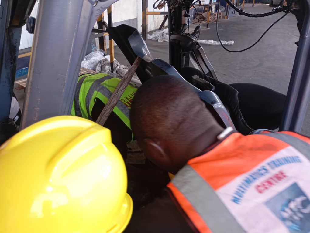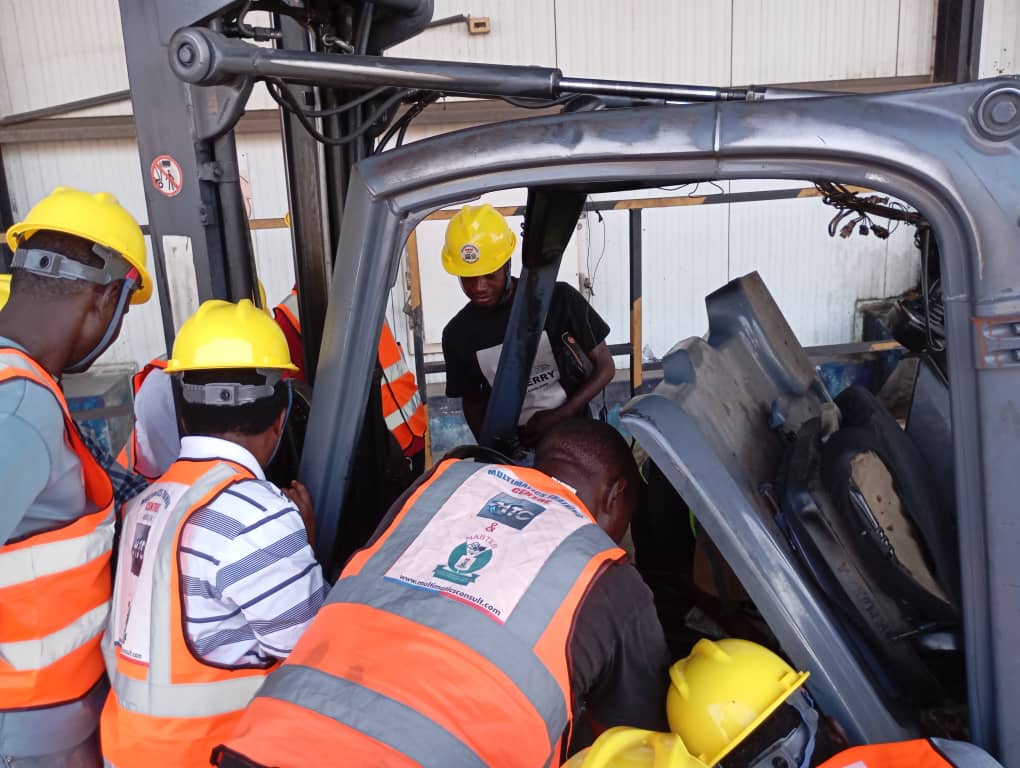 Trainees on stream 2 MTC Benin forklift operators training program, learning troubleshooting on an electric forklift. 27th Nov 2024